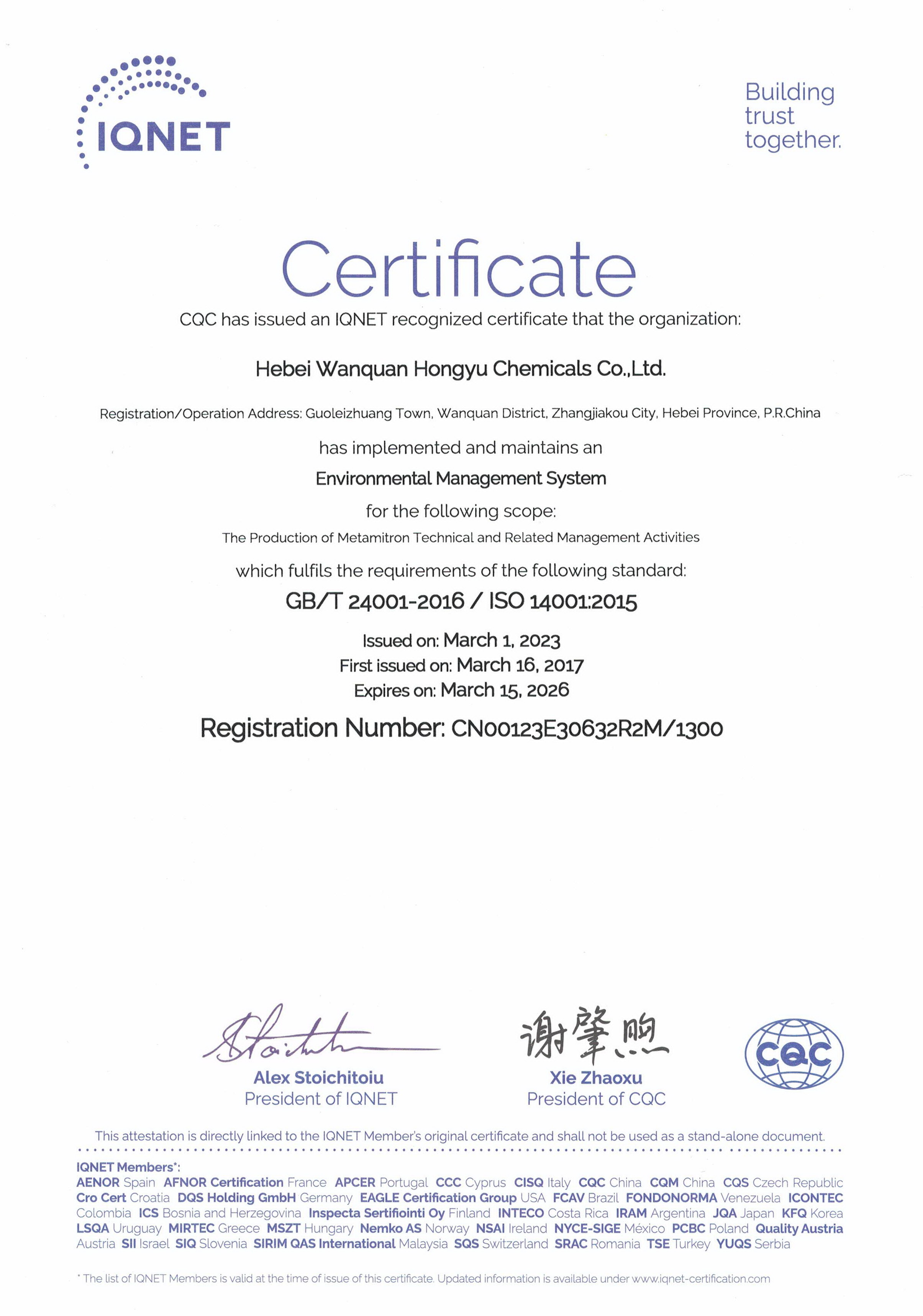 环境管理体系证书-中文副本