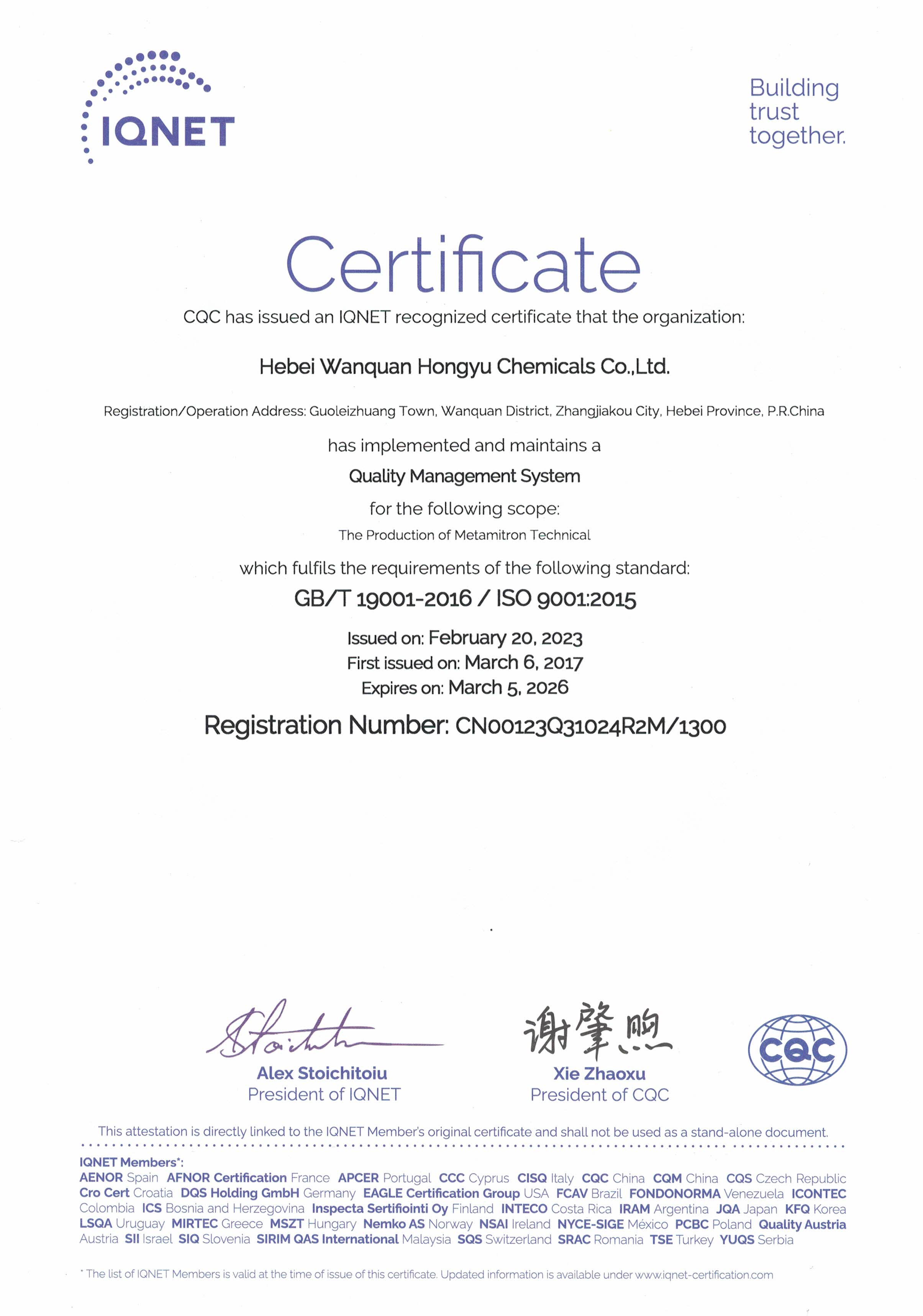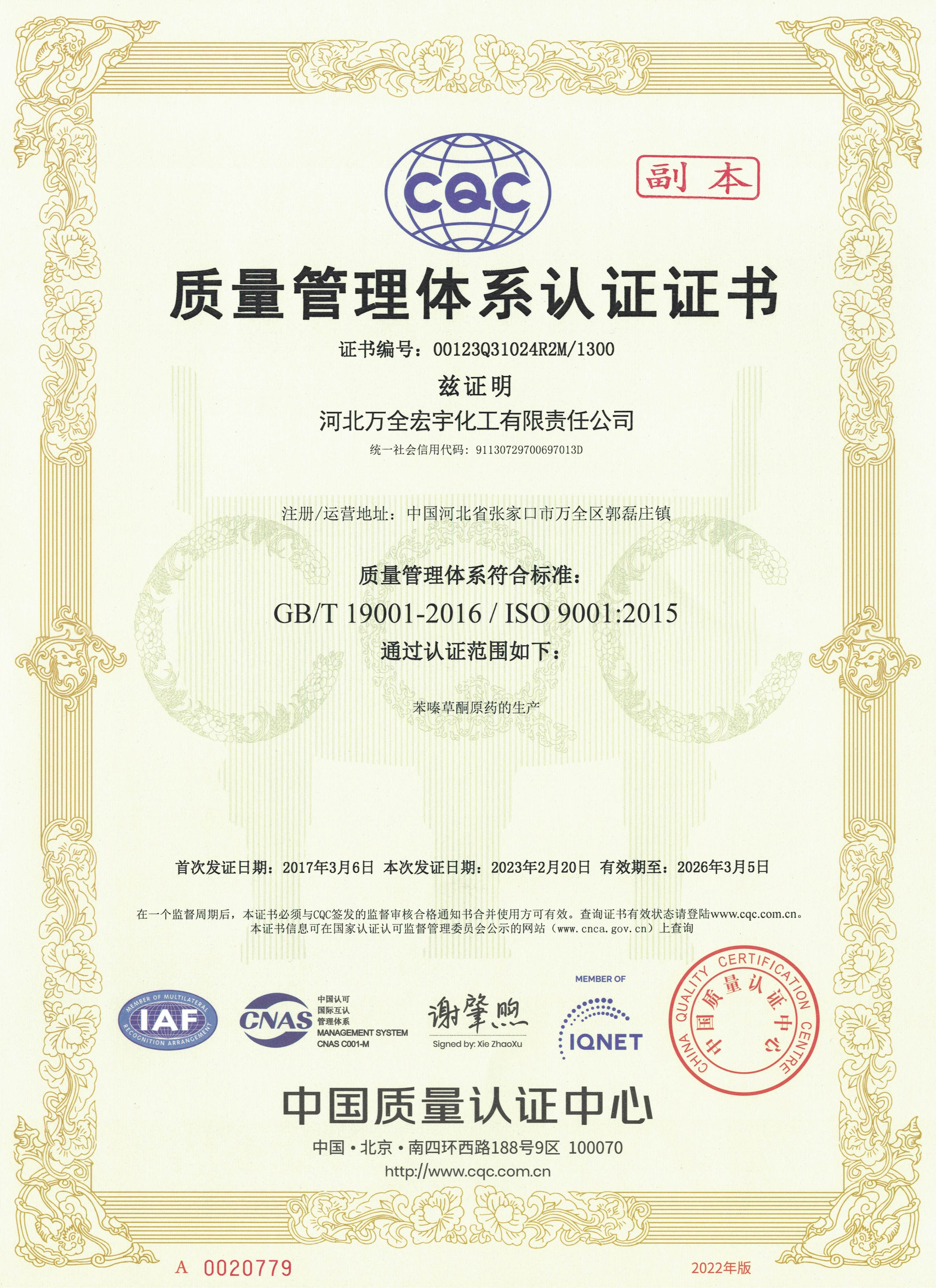 质量管理体系证书-中文副本