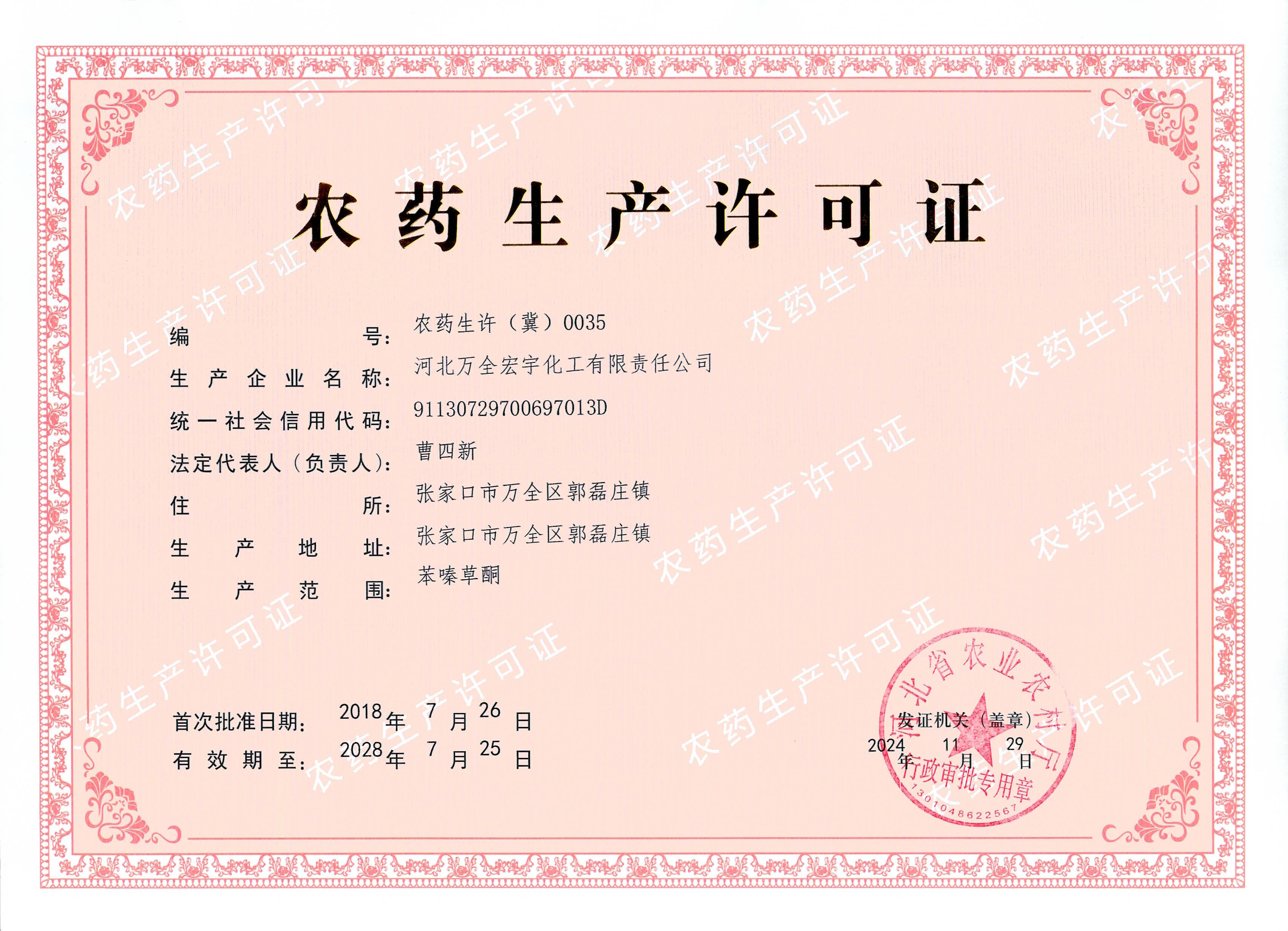 农药生产许可证